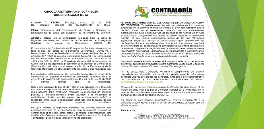 Igualmente se manifiesta para rechazar amenazas de muerte contra el Contralor de Sucre Miguel Arrazola Saenz y su Jefe de Control Fiscal.